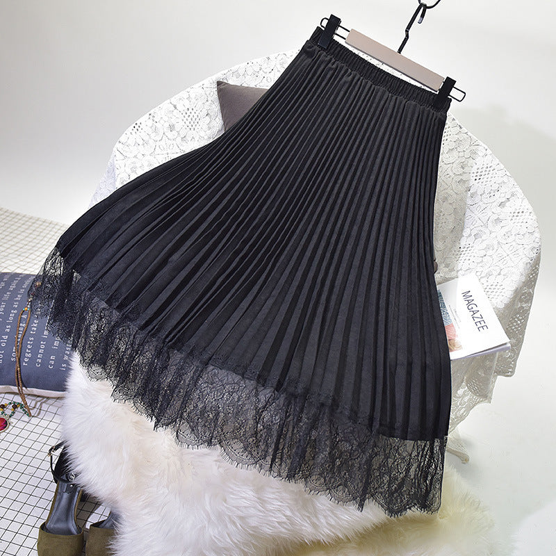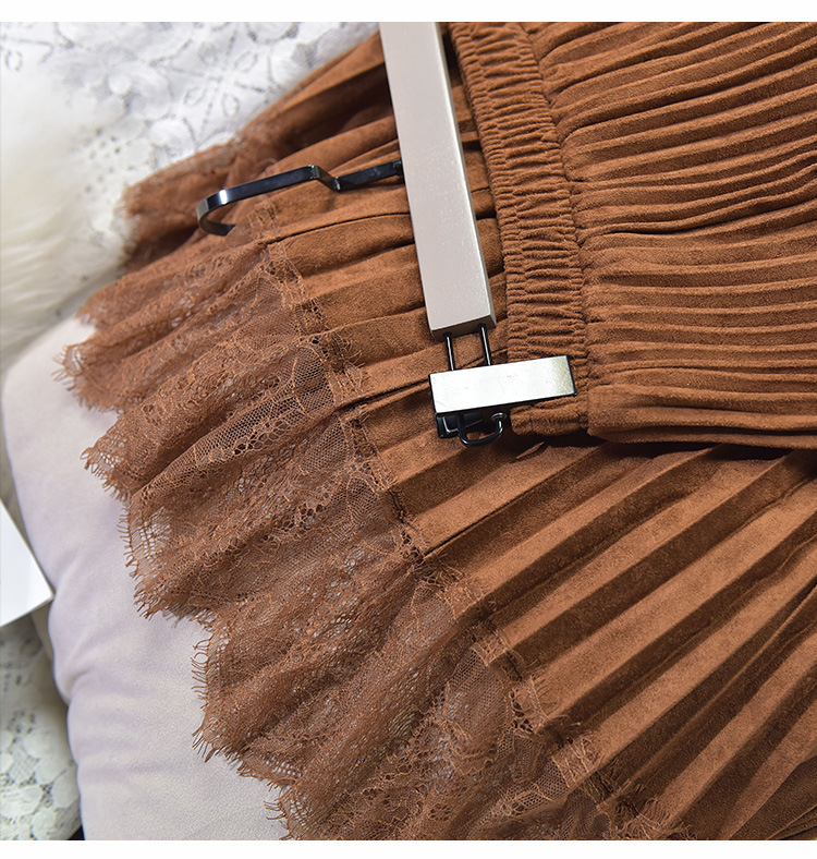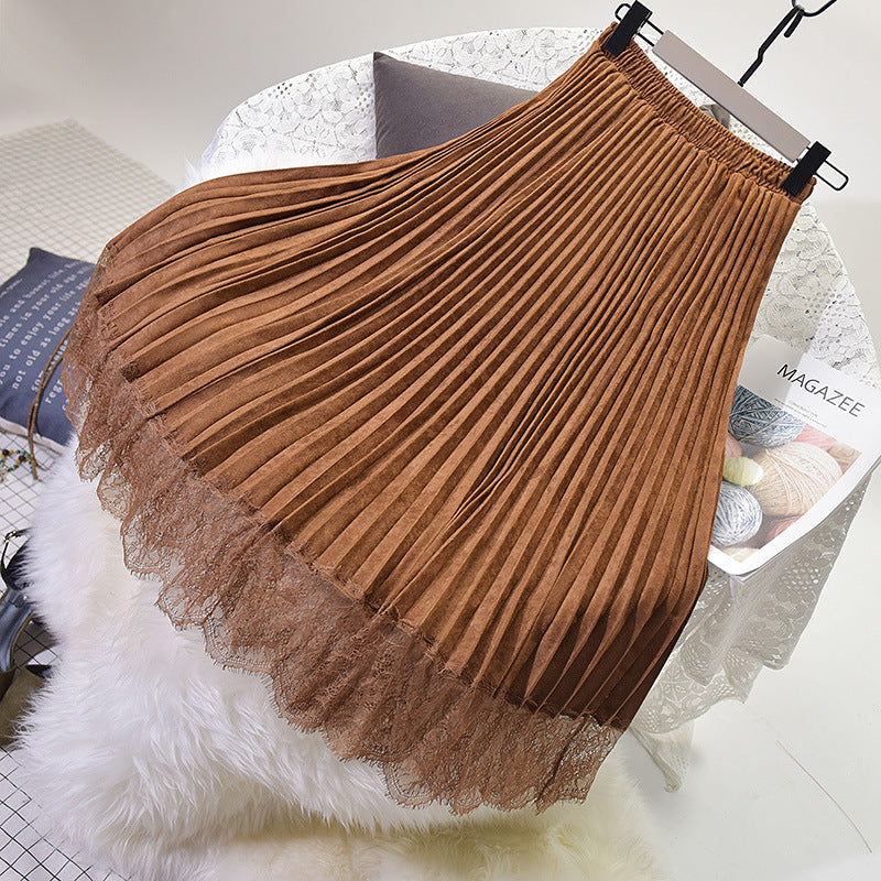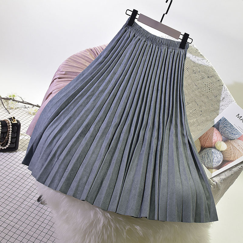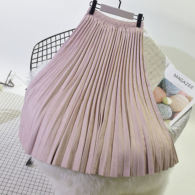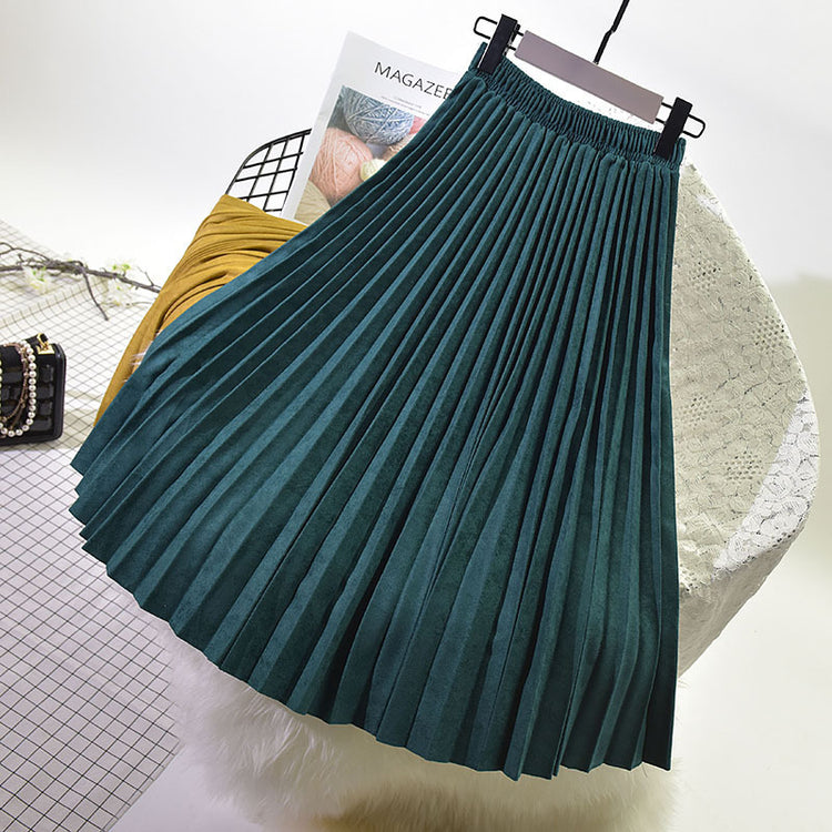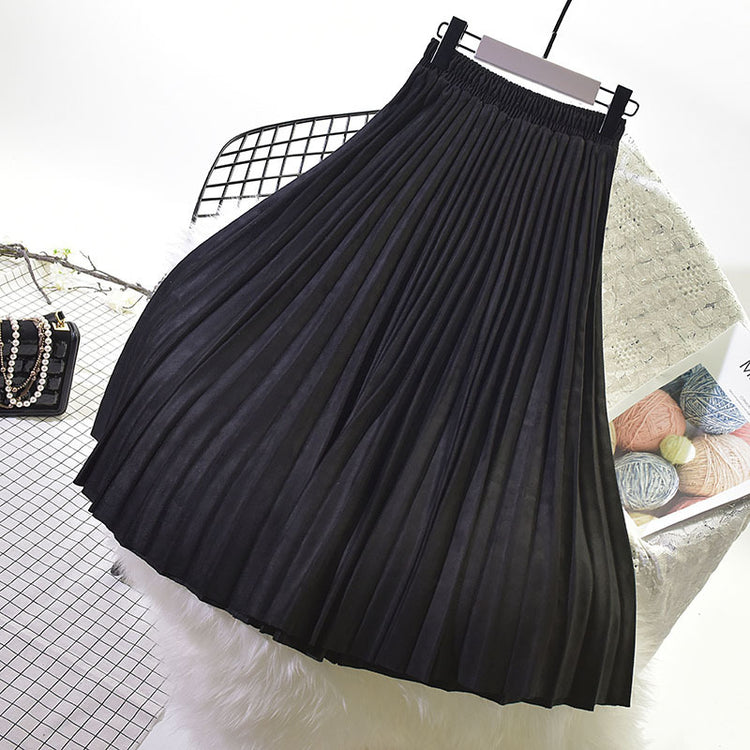 Long Deerskin Velvet High Waist Skirt